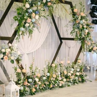 We cover all aspects of wedding ambiance, both indoor and outdoor, specializing in flowers, centerpieces, structures, receptions, bridal bouquets, dessert tables, and a wide variety of furniture.