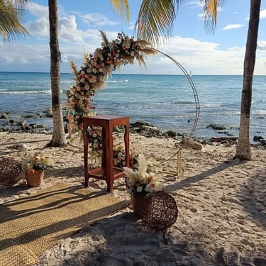 Which spaces you would like floral decoration in (e.g., reception, hall, beach, aerial, centerpieces, civil or religious ceremony, bouquets, boutonnieres, arch, or any other structure).